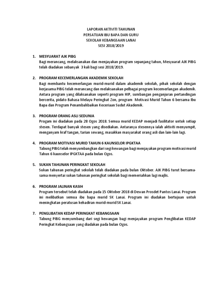 Contoh Laporan Aktiviti Tahunan Sekolah